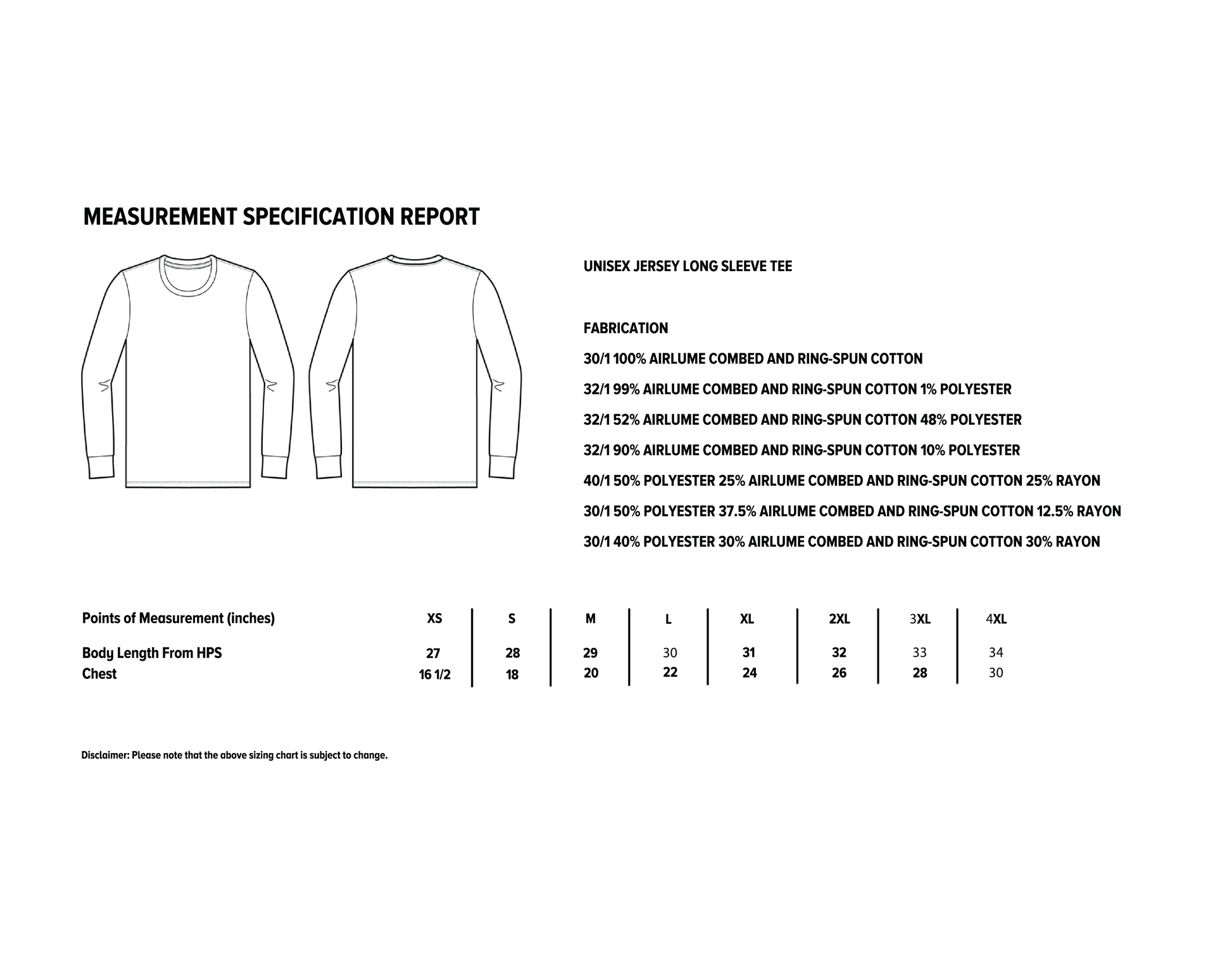 Fabrication: 100% Airlume combed and ring-spun cotton, 32 single 4.2 oz.